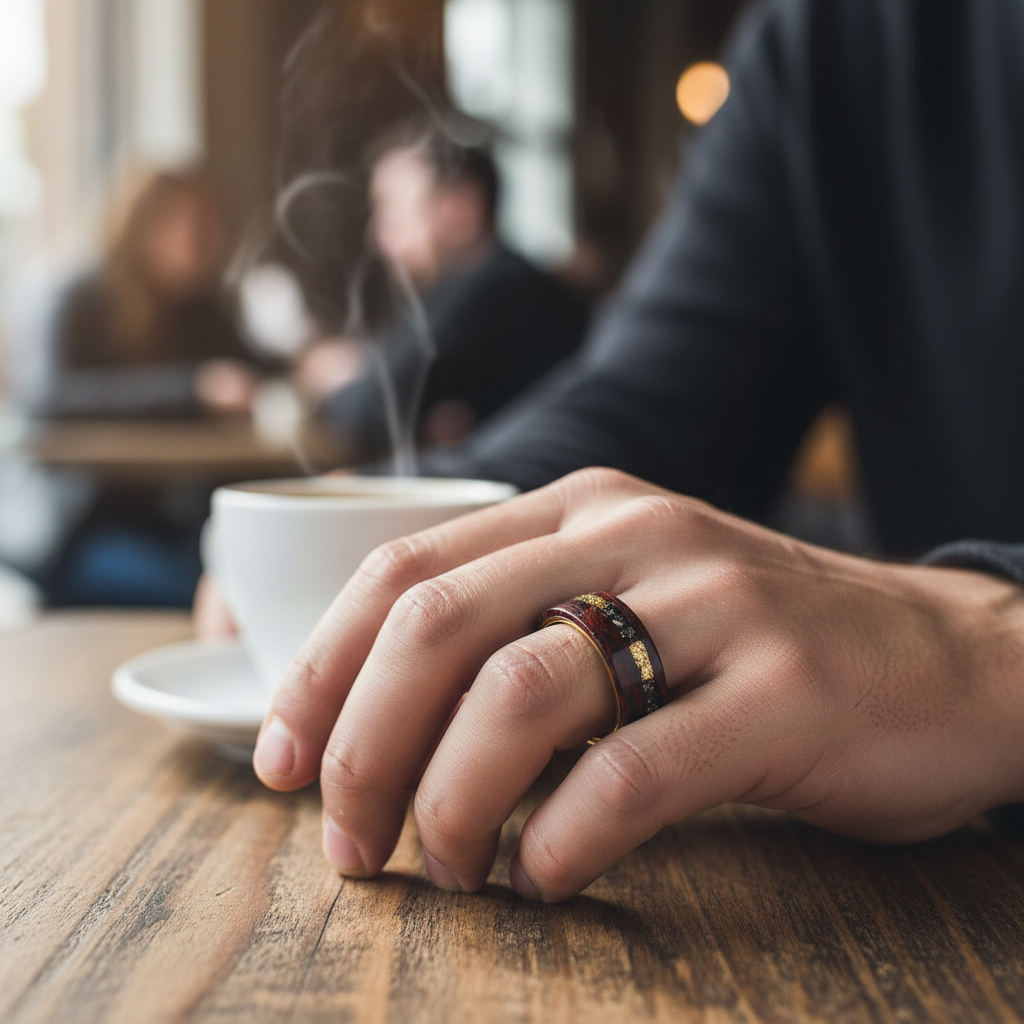 Rarity: Unlike standard woven carbon fiber, Forged Carbon Fiber (also known as Forged Composite) is made using a specialized compression molding process involving chopped carbon fibers and resin under high heat and pressure. This process creates a totally unique, random, marbled texture—no two rings will ever have the exact same pattern.